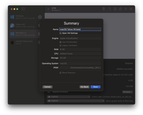 除了 UTM 之外,還有其他虛擬化應用程序和選項可用,但 UTM 確實非常棒,尤其是對於免費應用程序而言。除了 UTM 之外,還有 Viable、VirtualBuddy、VirtualBox、tart(為高級用戶設置 Tahoe beta VM 的最快方法)、Parallels、VMWare、Okra Desktop 等。