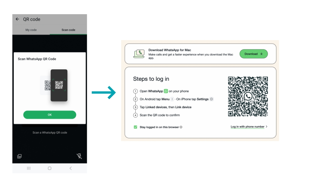 步驟2。掃描網頁上的 WhatsApp 二維碼並鏈接裝置登入.