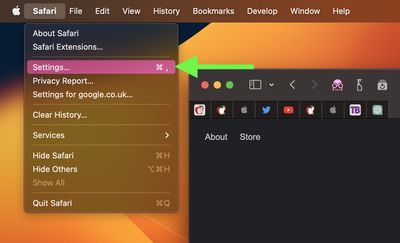- 在 Safari 中,選擇Safari -> 設置...在菜單欄中。