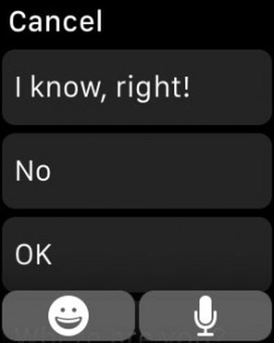 在Apple Watch上,回复短信時,會列出新定制的短語。