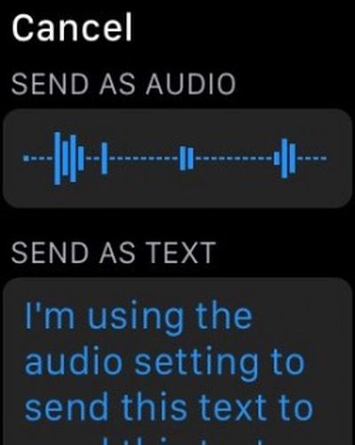 - 您可以選擇將其作為音頻剪輯或文本發送,但如果您打算作為音頻發送,則需要跳過聽寫標點符號。