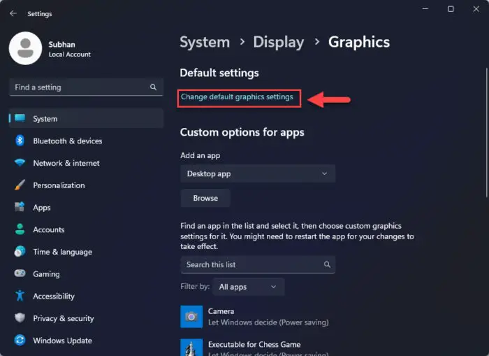 步驟 2. 選擇“圖形”圖標,然後單擊“更改默認圖形設置”。