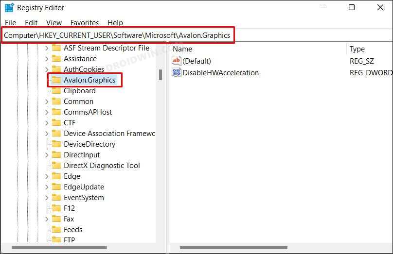 步驟 1:打開註冊表編輯器,然後將其複制並粘貼到地址欄中,導航到以下位置:ComputerHKEY_CURRENT_USERSoftwareMicrosoftAvalon.Graphics
