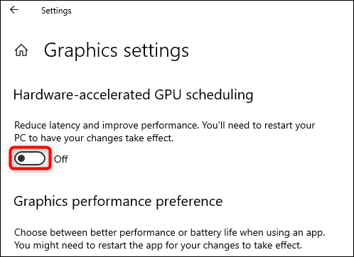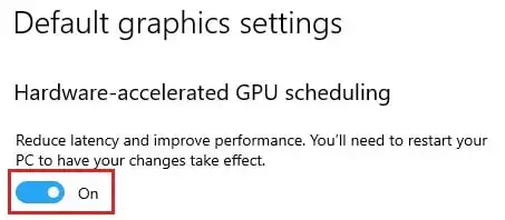 步驟1和步驟2同上。您只需關閉“硬件加速GPU調度”按鈕,即可禁用Windows 11硬件加速。