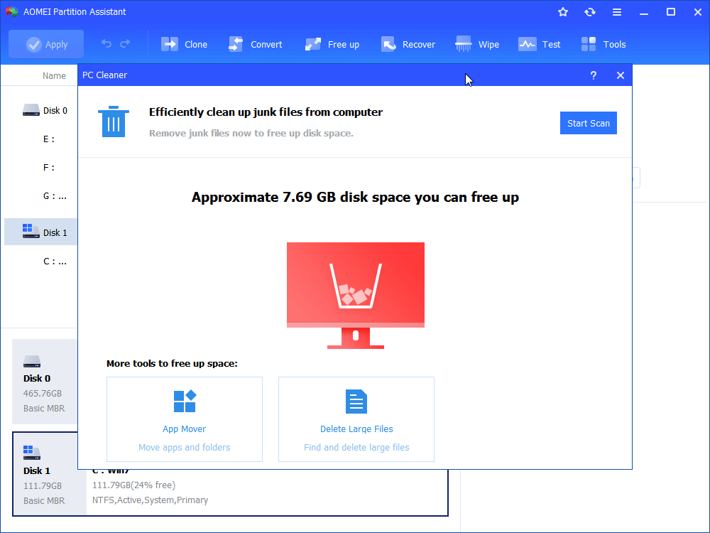 如果測試結果表明您的磁盤狀況良好,您可以繼續使用其其他功能來提高系統速度。為了讓你的設備運行得更快,清理垃圾文件是一個好方法。在主界面上,您可以選擇“電腦清理器”來刪除臨時文件、系統緩存和其他隨著時間的推移而積累的不必要的文件。順便說一句,此功能還可以幫助您刪除潛在的病毒和惡意軟件。