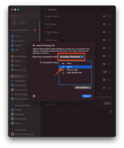 - 從標記為“的下拉菜單中選擇 VPN分享您的連接”。