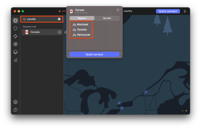 另外,獲得加拿大IP地址是小菜一碟NordVPN 在加拿大擁有 280 多台服務器。只需連接到服務器即可蒙特利爾、多倫多或溫哥華。