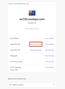 - 現在,訪問 NordVPN服務器實用程序和下載 OpenVPN UDP 客戶端 配置文件通過選擇您的首選服務器位置。