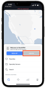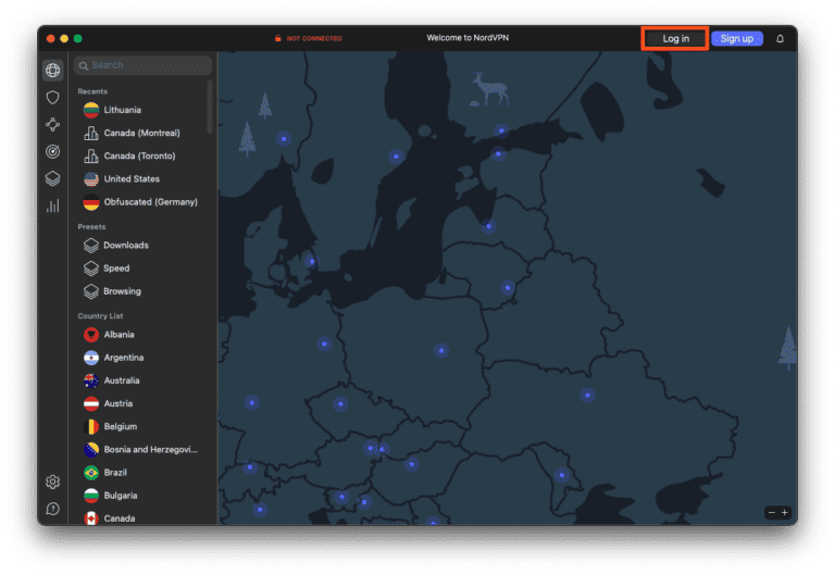- 啟動 NordVPN 應用程序並登入與您的憑據。