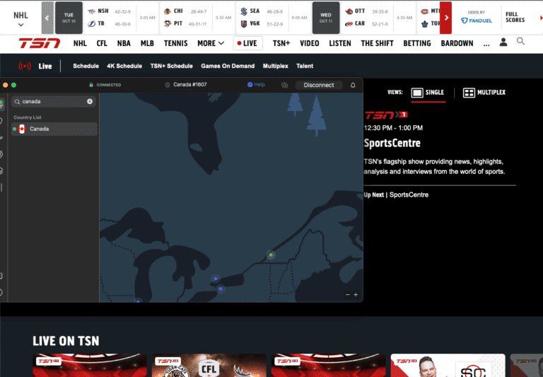 例如,我在解鎖時沒有遇到任何問題TSN使用 NordVPN 加拿大境外的通道。