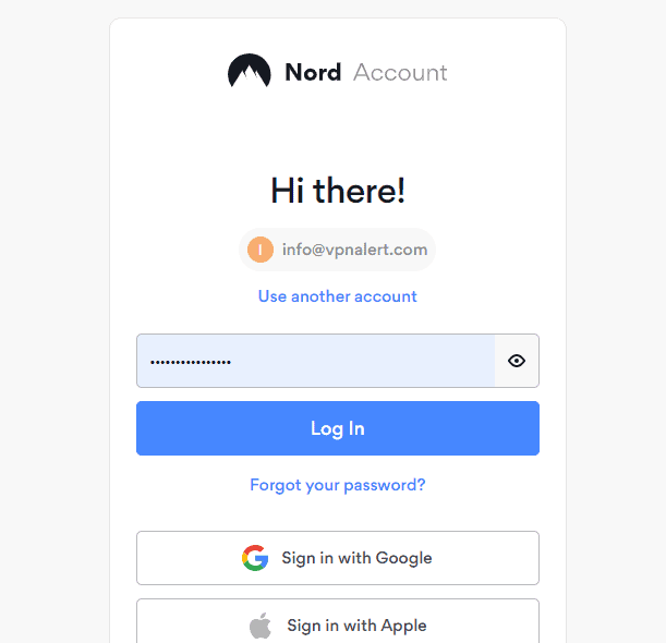 - 啟動該應用程序並使用NordVPN帳戶憑據登錄。