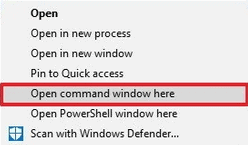 - 在最近安裝的應用程序所在的文件夾中打開命令/終端窗口。右鍵單擊並選擇“在此處打開命令窗口”在 Windows 或“在這裡打開終端”在 Linux/macOS 上。