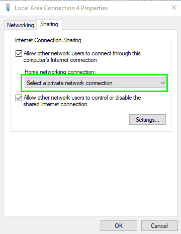 - 點擊”分享”標籤並啟用“允許其他網絡用戶通過該計算機的Internet連接連接“ 選項。