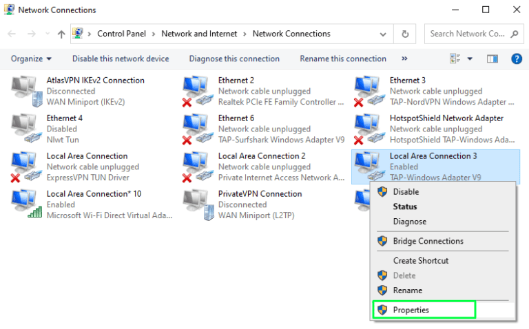 您可以通過查看其連接狀態來識別 PrivateVPN 網絡連接,該狀態應為“啟用”。