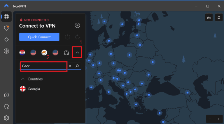 - NordVPN 將自動推薦服務器以獲得最佳體驗。您還可以選擇要連接的首選國家/地區。