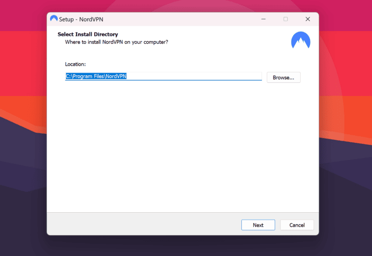 - 選擇位置您要安裝 NordVPN 的位置,然後單擊“下一個”。