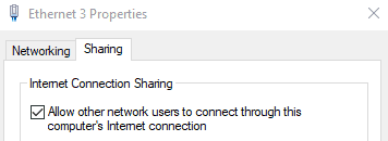 - 單擊“分享”選項卡並選中“旁邊的框允許其他網絡用戶通過此計算機的 Internet 連接進行連接”。