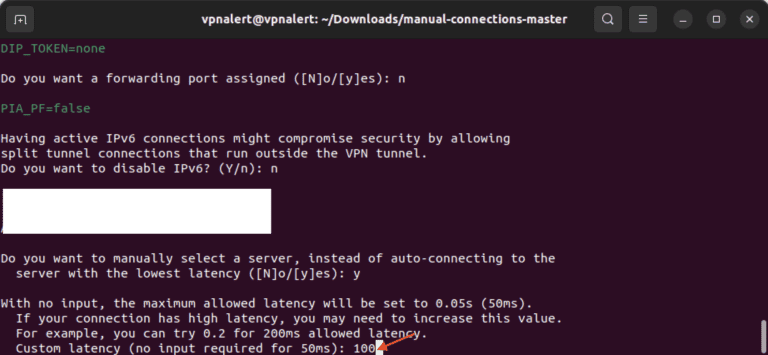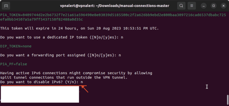 - 輸入“Y”(是)或“N”(否)以允許或禁用 IPv6。我建議禁用它,因為它有時會干擾您的 VPN 連接。