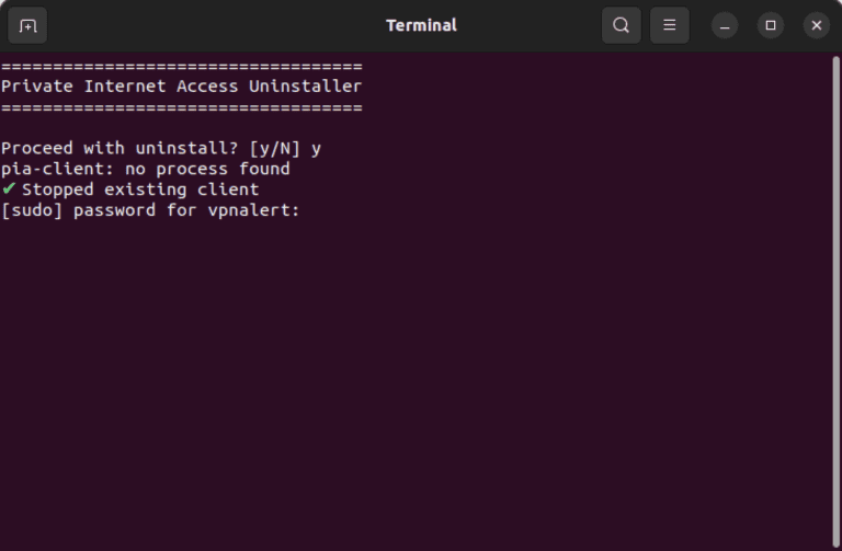 如果您沒有通過其應用程序安裝適用於 Linux 的 PIA,則可以通過 Linux 終端卸載 VPN。請按照以下簡單步驟操作: