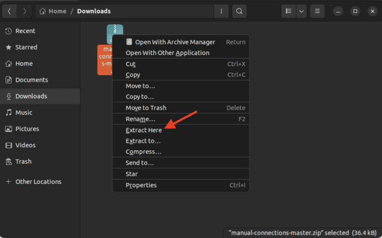 - 打開 ”文件” 在 Linux 系統上訪問下載的壓縮文件夾。