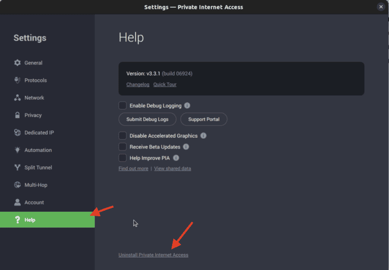 從 Linux 計算機上卸載 PIA 變得輕而易舉,因為您獲得了應用內安裝程序。方法如下: