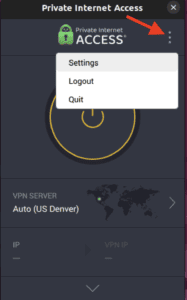 - 啟動 PIA Linux 應用程序,然後單擊應用程序右上角的三個垂直點。