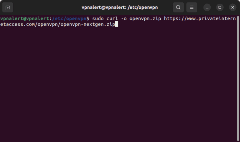 - 使用命令“下載 PIA Linux zip 文件須藤wgethttps://www.privateinternetaccess.com/openvpn/openvpn-nextgen.zip“ 或者 ”sudo curl -o openvpn.zip”https://www.privateinternetaccess.com/openvpn/openvpn-nextgen.zip”