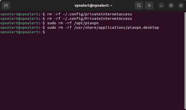 - 如果您想從 Linux 應用程序菜單中刪除 PIA 應用程序圖標,請輸入“sudo rm -rf /usr/share/application/piavpn.desktop”。