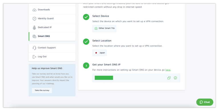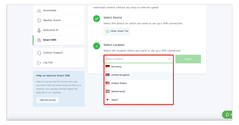 - 根據您要取消阻止的內容選擇智能 DNS 服務器。 PIA 在以下地區提供 5 個智能 DNS 位置德國,英國、美國、荷蘭, 和日本。