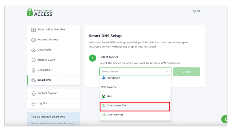 您最多只能將三個設備添加到 PIA 的智能 DNS。如果您想更改位置,請按照從第 7 步開始並選擇另一個國家,然後重複一切。