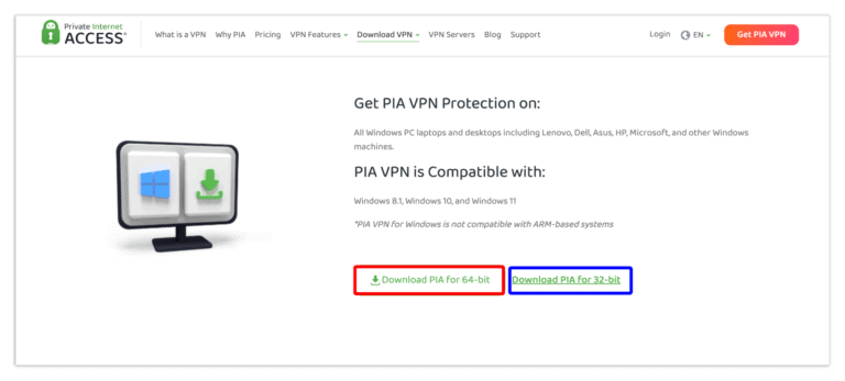 - 下載 PIA Windows 應用程序。此方法僅適用於 Windows PC。