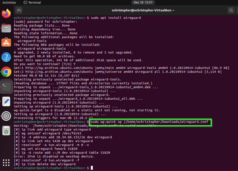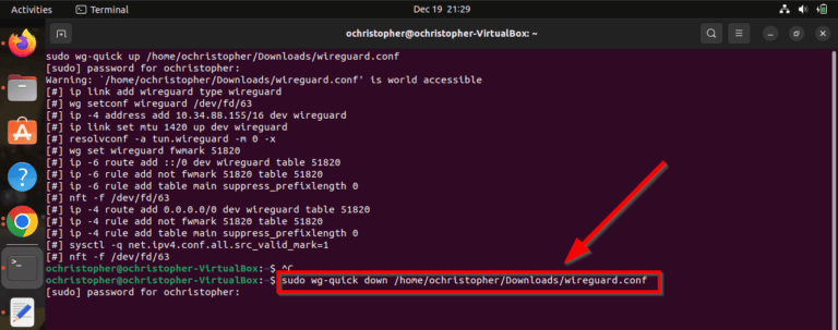 - 就我而言,那就是[sudo wg-quick down /home/ochristopher/Downloads/wireguard.conf]。