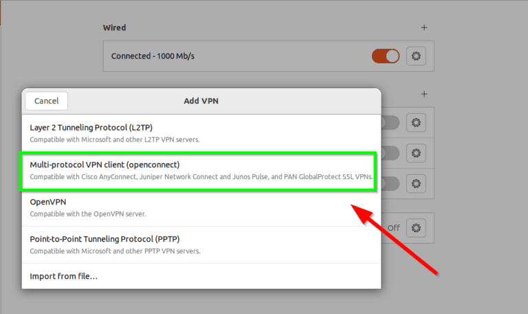 sudo apt-get install openconnect network-manager-openconnect network-manager-openconnect-gnome