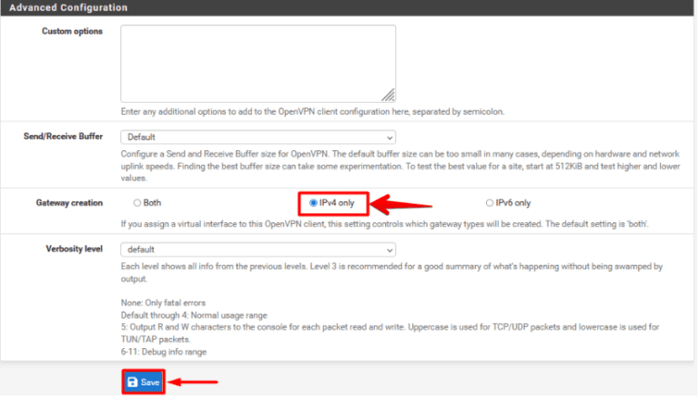 - 導航至高級配置, 選擇 ”僅限 IPv4,”,然後單擊“節省”。