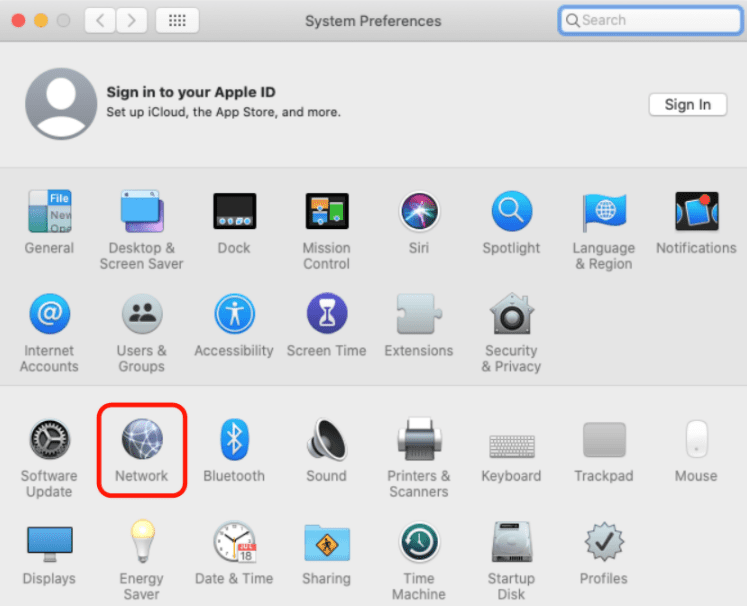 步驟2:打開系統偏好設置並導航至網絡。