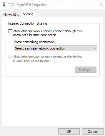 第6步:按兩下Tap-VyprVPN 適配器並選擇分享選項卡。