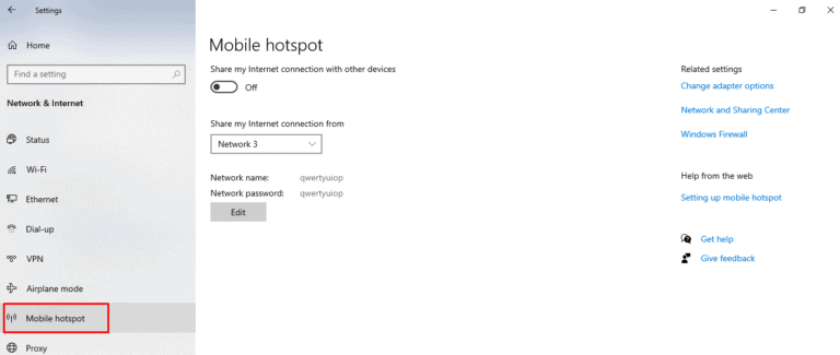 第4步:點擊移動熱點在左側邊欄上。
