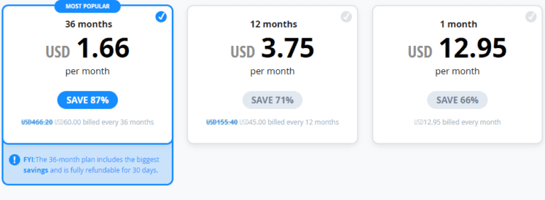 如果您有興趣最大程度地節省開支,那麼我推薦 36 個月的計劃,因為它可以讓您節省高達 87% 的費用。