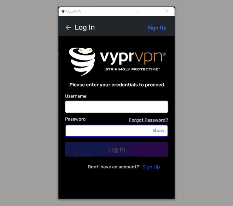 - 設置後,使用您的用戶名和密碼登錄vyprvpn。