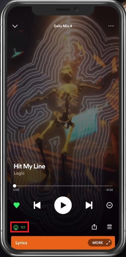 打開 Spotify。如果您的設備上的 UI 看起來有點不同,請在 Google Play 或 App Store 中更新 Spotify。從這裡,選擇播放任何 Spotify 歌曲。播放音樂時,您應該會在屏幕底部看到此揚聲器或桌面圖標。