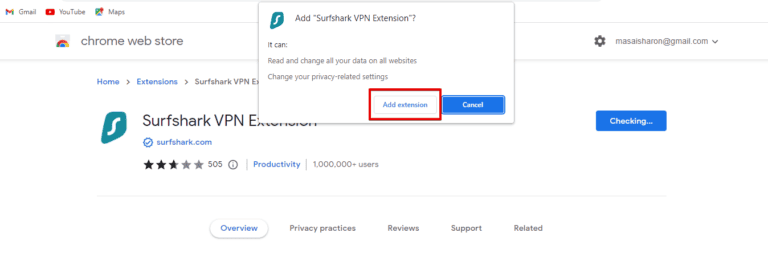 - 點擊 ”Surfshark VPN 擴展”。
