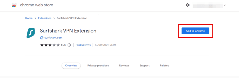 - 前往Chrome 網上應用店並蒐索“衝浪鯊VPN,”然後點擊進入。