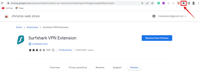 - 單擊瀏覽器右上角的擴展按鈕,然後點擊 Surfshark 擴展旁邊的圖釘符號即可輕鬆訪問。