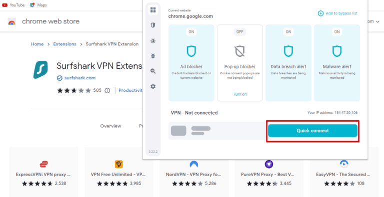您還可以添加 Surfshark Chrome 擴展程序來保護您的數據並在使用 Google Chrome 瀏覽器時保持匿名。