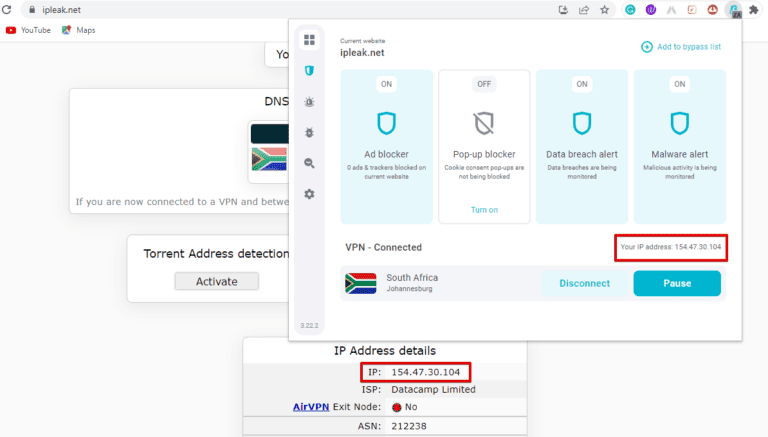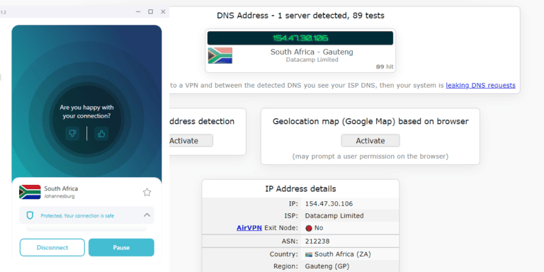 - 建立連接後測試 IP 洩漏。我用https://ipleak.net。測試應返回 Surfshark 分配的 IP 地址,以確保零洩漏。