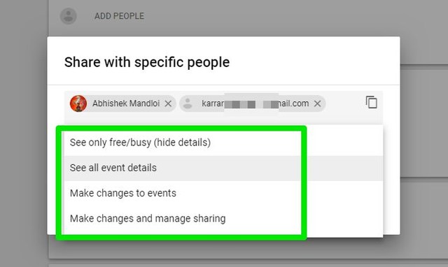 3. 現在單擊旁邊的下拉菜單,然後選擇是共享所有事件信息還是僅共享忙/閒時間。