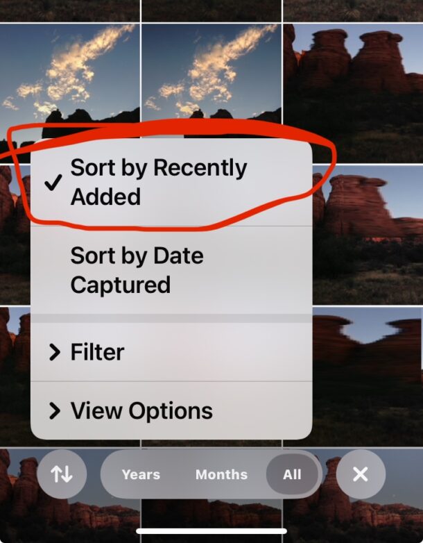 雖然可能並不明顯,但 iOS 18 有一種方法可以按最近添加的照片排序,而不是按拍攝日期(創建日期,新的默認設置)排序,僅這一小調整就解決了您可能會聽到的有關新照片應用程序的許多抱怨。