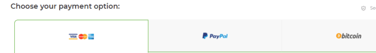 步驟3:選擇您的付款方式。選項包括Visa、萬事達卡、美國運通卡、PayPal 和比特幣。