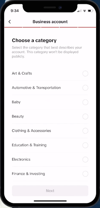 切換到企業帳戶後,TikTok 會指導您完成幾個設置步驟。