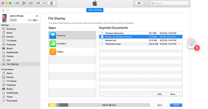 iTunes 是大多數 Apple 設備所有者都熟悉的另一種非常流行的軟件。該軟件在Apple生態系統中具有眾多功能,並且常常為跨平台溝通提供橋樑。通過執行以下操作序列,可以非常輕鬆地在智能手機和計算機之間發送任意大小的文件: